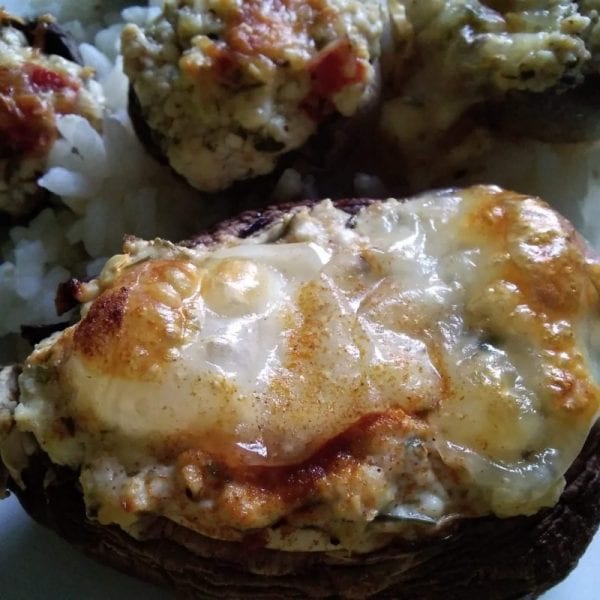 Fűszeres túróval töltött gombafej jázmin rizzsel